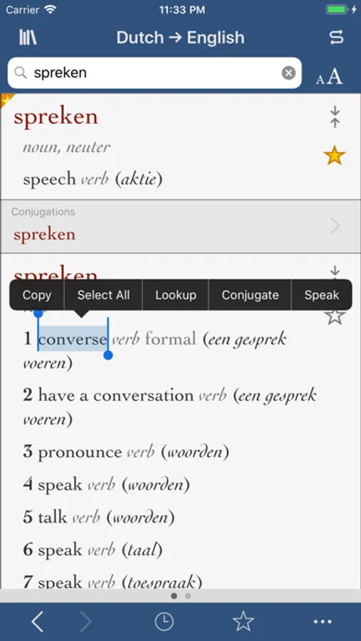 • Conjugate a verb from the dictionary results by tapping it