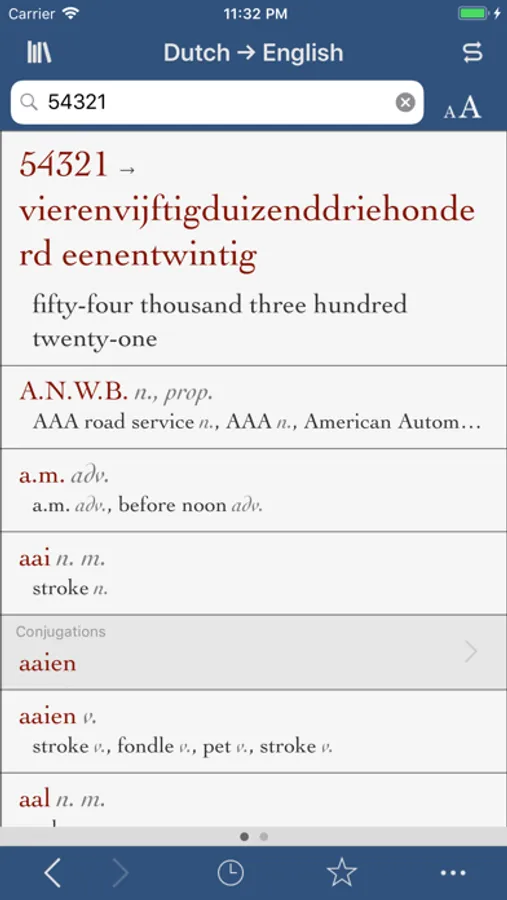 Ultralingua makes apps for people who love languages. You can count on our Dutch-English dictionary to provide all the content you need, along with extra features that help you get the most out of the dictionary. Use our verb conjugation tool to find complete conjugations of thousands of verbs in all standard forms, and the number translator to convert numerals into Dutch or English text instantly.