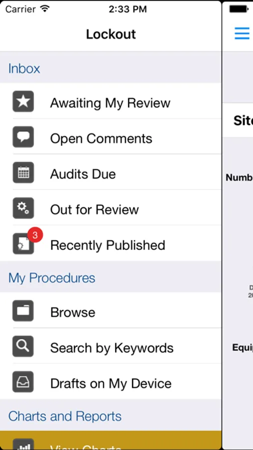o View reports on-site on the progress and status of procedure creation and audits.