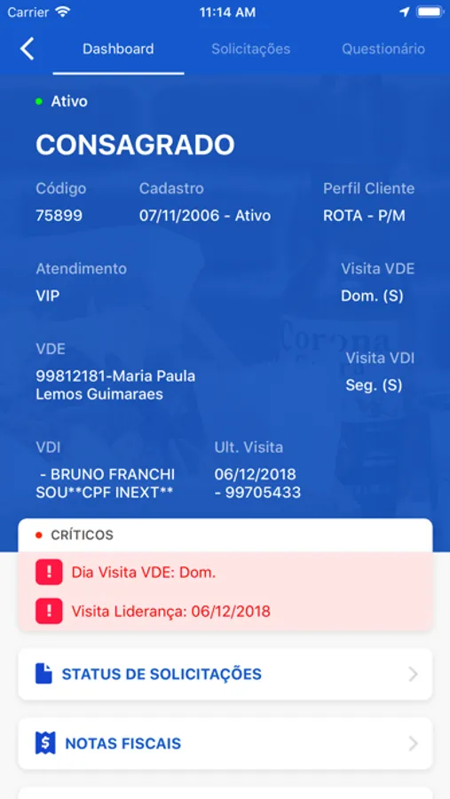 Meu Cliente: aplicativo utilizado para avaliação de Pontos de Vendas, Processos de Vendas e Adesão de Programas.