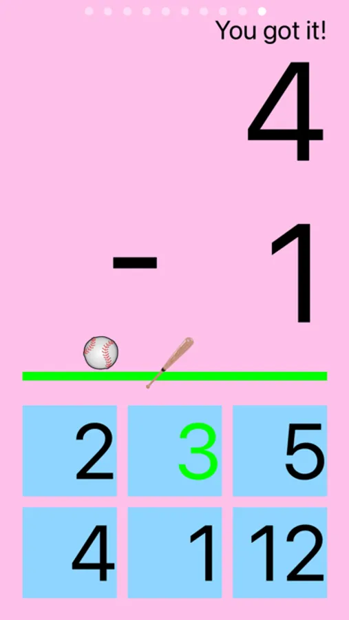 It quizzes them with problems, and provides a progress chart where you and they can see how they are doing at different number ranges. They should get to the point where they can answer any question before the ball touches the bat.