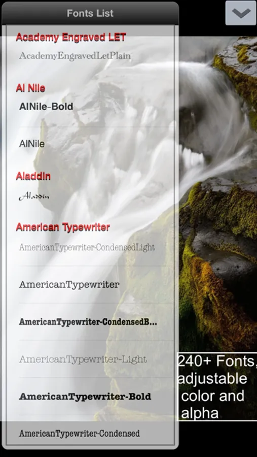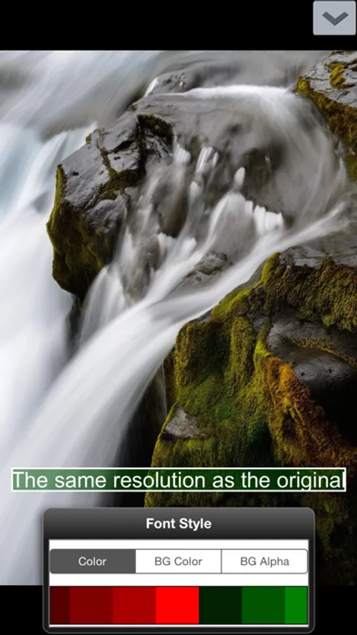 >Tap any text, pop up a menu bar with Edit,Font,Style,Size,Tilt and Align buttons, you can Select any font styles / colors / background colors / background transparence as you like.