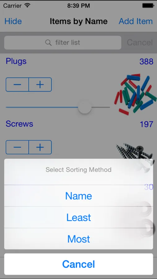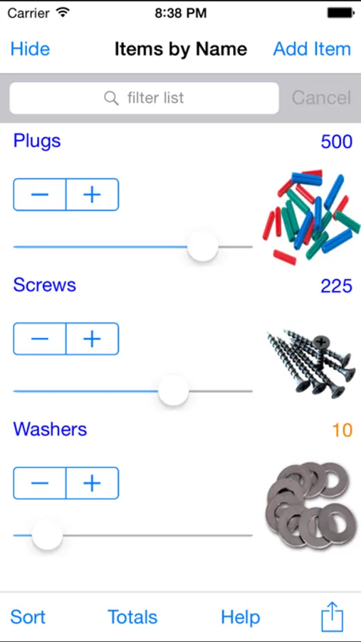 When you use an item, you can pull your phone out of your pocket and quickly tap and record that one item was used or swipe to use 100. It is designed for one hand use.