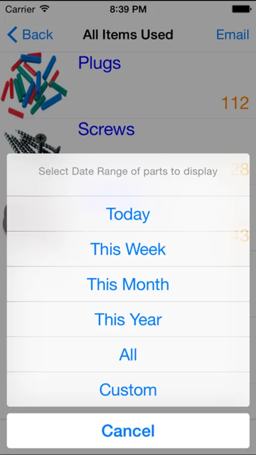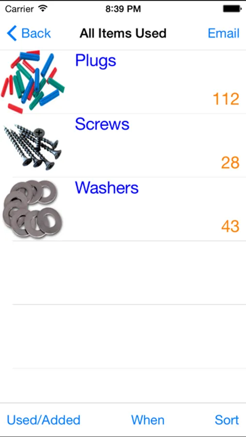All items added or used are logged and you can view a list of items used/added, today, last week, last month etc. You can even email the list.