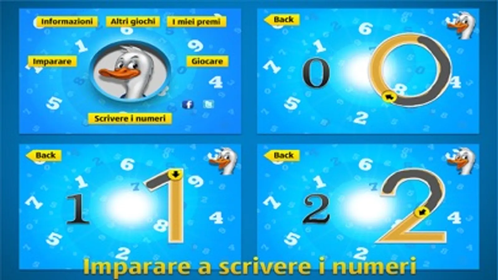In Imparare a contare troverete 9 giochi che, oltre ad intrattenere, insegnano i numeri. Ogni gioco ha 5 livelli differenti.