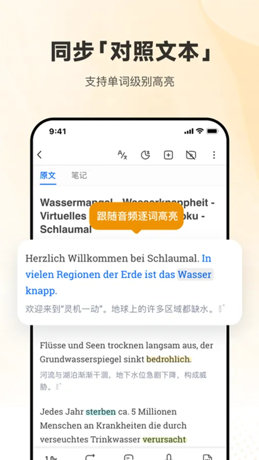 - 全新百科智能提示,让你训练听力的同时不知不觉增加德语词汇量