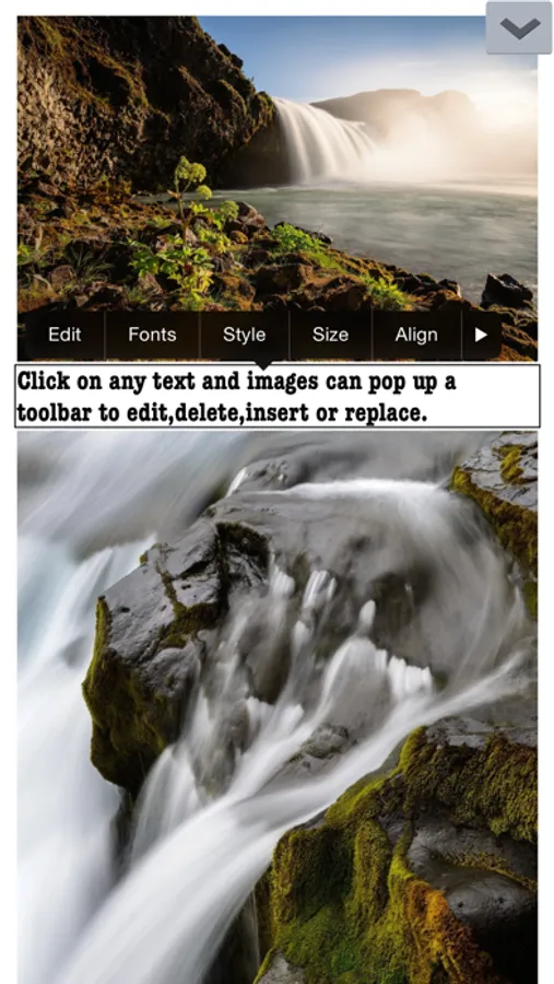 > You can insert,delete,replace,edit via tapping any text or pictures.