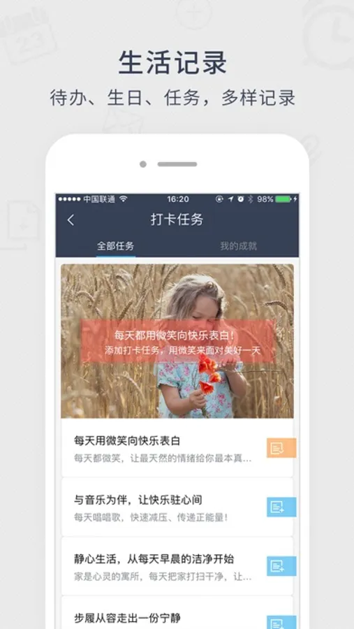 (2)提醒:日程提醒,待办事项,生日提醒,生理期,任务打卡,购票提醒…