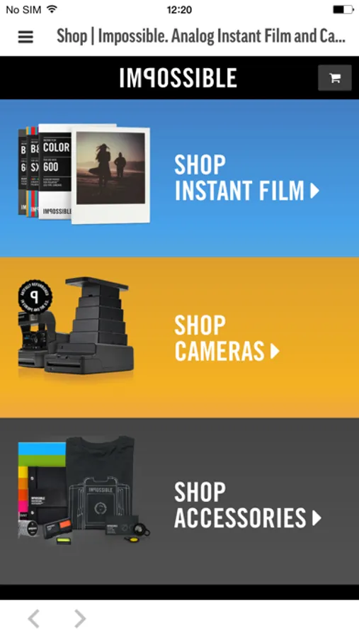 A dedicated mobile shop that lets you order Impossible and Polaroid Originals products quickly and easily