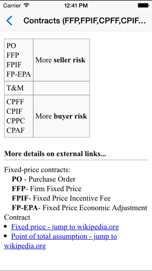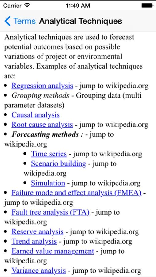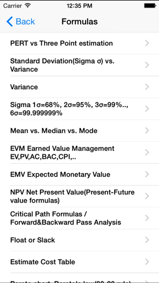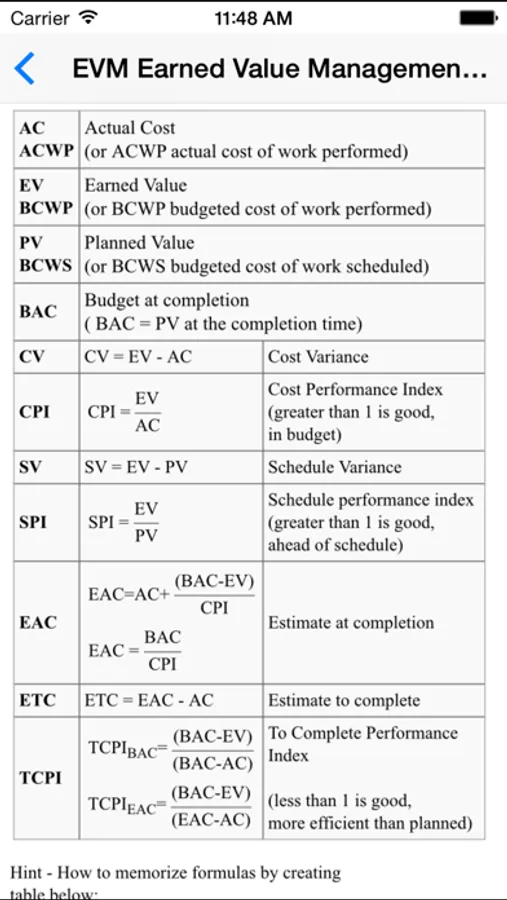 Each formula/term contains a brief build-in definition and, for more details a list of internet links to materials available on the external projects (e.g. wikipedia.org pmi.org etc.).