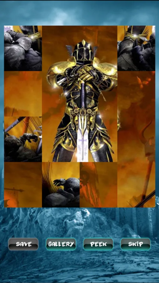 Enjoy of high quality images. The game contains 60 levels with knight pictures. You will find sword, weapons, dragon, knight, armor and knight's battles. Drag the pieces to the right place to create the image. Use "Peek" button to preview the original image. Completed levels will be unlocked and you can save images to your phone photo gallery. If you can not complete any level you can simple skip it and try to complete it later. Just press "Skip" level button to skip current level.