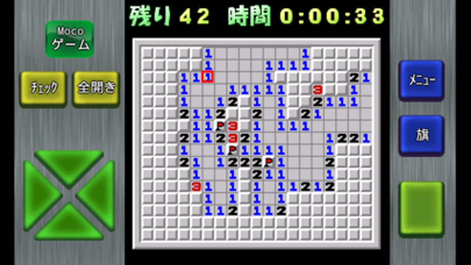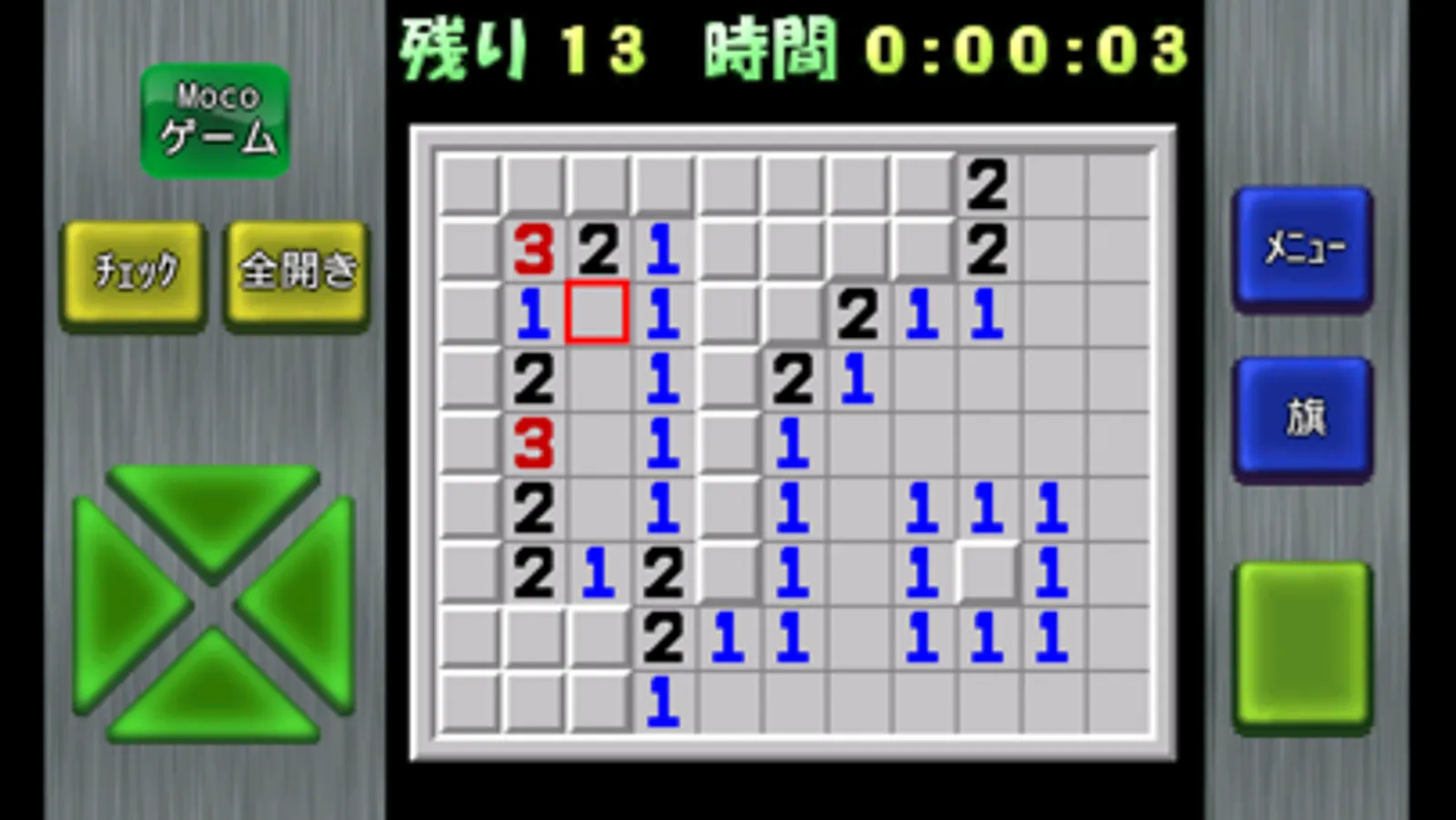 マスの数字がそのマスの周り8個にある地雷の数を表し、その爆弾を開けないように全てのマスを開けるゲームです。簡単なパズル的な要素もあります。運の要素もありますが、このゲームではなるべく運の要素は排除しています。