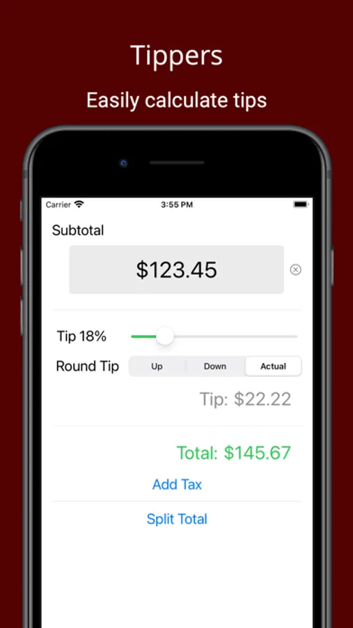 Use the Apple Watch for quick and discrete calculations on the go. Use the Digital Crown to adjust your tip amount. Quick launch Tippers from a watchOS Complication.