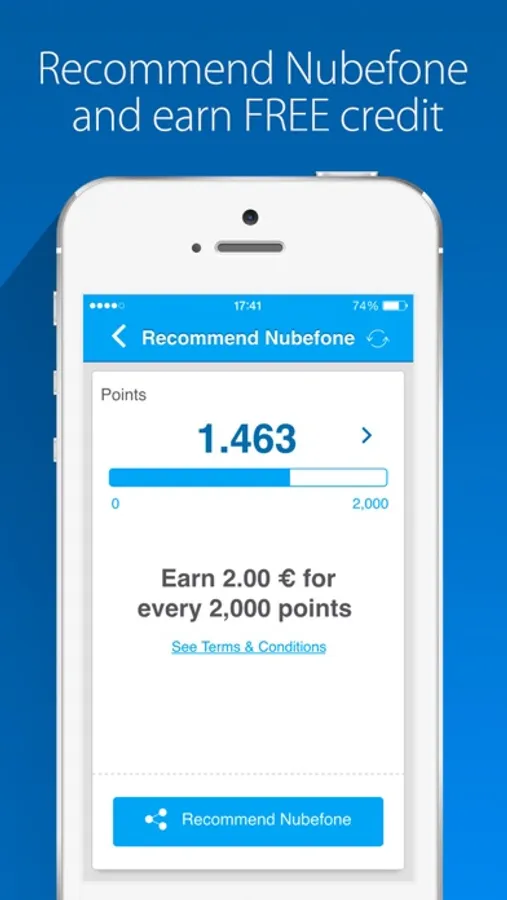 - GET FREE CREDIT: tell your friends about Nubefone and earn FREE credit for every invited contact who uses Nubefone.
