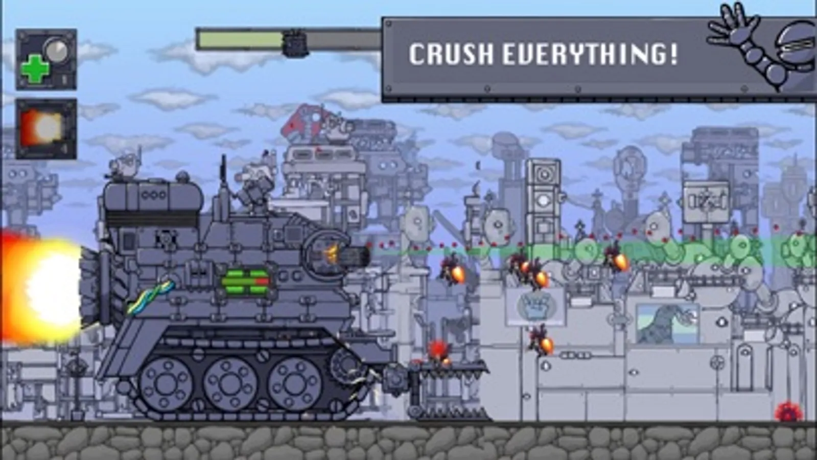 Build up the stack-able death machine Mega Tank, crush the enemy beneath your weight, and roll until the treads fall off.