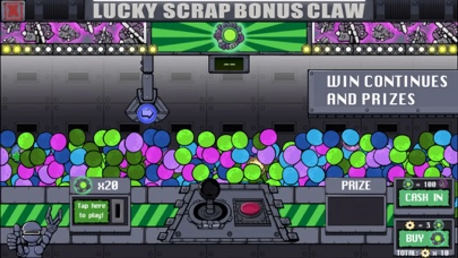 -Crane Game to collect weapon pieces, win continues, and extra scrap