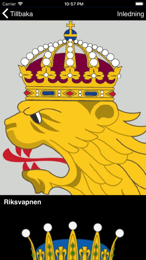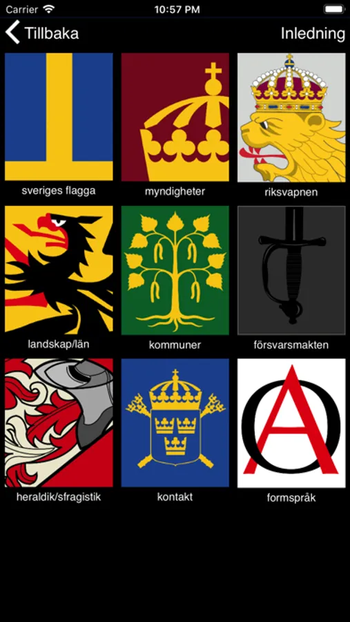 Sveriges visuella identitet och kulturarv. Innehåller landskapsvapen, länsvapen och kommunvapen. Avsnitt om Sveriges flagga, emblem för myndigheter och Försvarsmakten samt en kort orientering i vapen- och sigillkunskap.