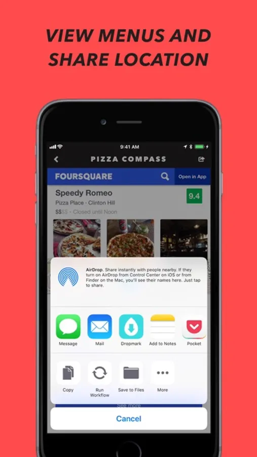 Looking for something new? Explore the map or spin the compass to discover pizza all around you. See ratings, restaurant hours, and reviews powered by Foursquare. Even share your favorite pizza places with friends.