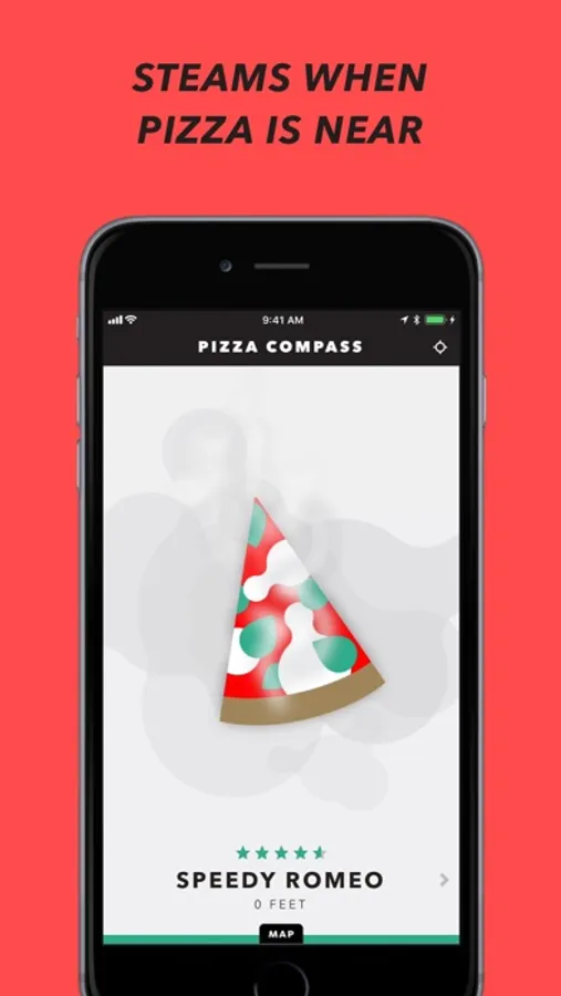 Find your way to the nearest pizza joint in a hurry. Our pizza-to-mouth indicator shows the exact travel distance required to enjoy a fresh slice, and our steam technology lets you know when you’ve arrived.