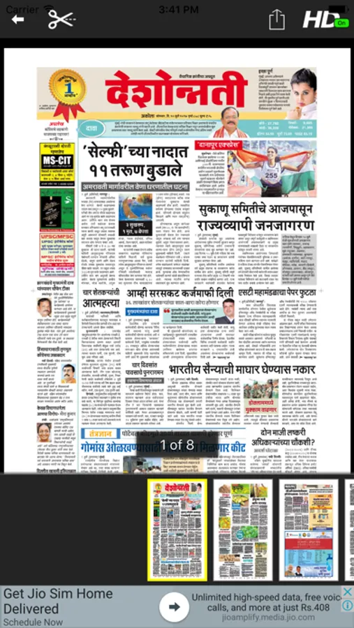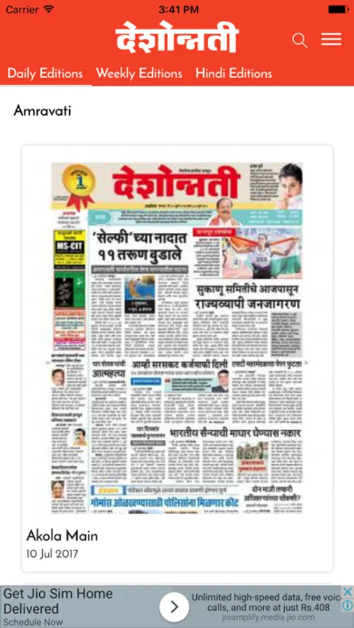 Deshonnati Indian Newspaper of Marathi Language from Akola - Washim, Amravati-Wardha, Buldana, Yavatmal, Nanded-Aurangabad & Jalgaon-Dhule etc