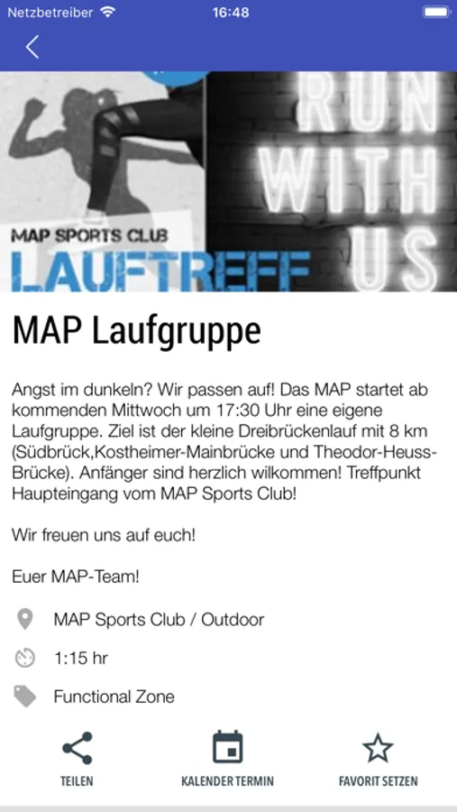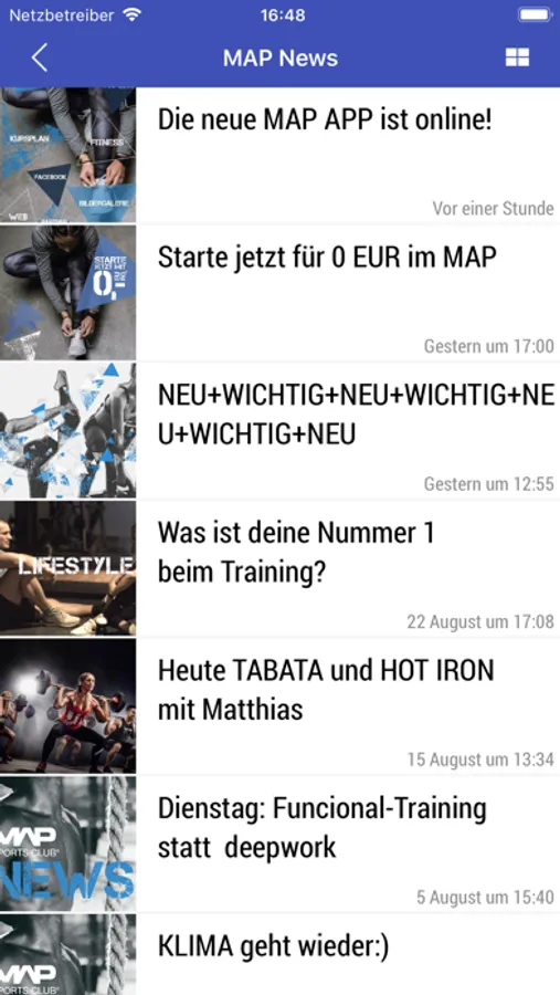 Alle News aus dem MAP SPORTS CLUB sind immer aktuell auf Ihrem iPhone und die wichtigsten werden per Benachrichtigung auf Ihr Smartphone geschickt: So wissen Sie sofort, wenn es neue Kurse gibt und verpassen keine Special-Events mehr.
