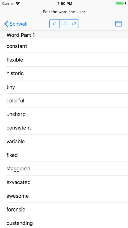 In the App you can add, load and store different word lists for e.g. work, sport and leisure. Schwall App comes with several premade lists.