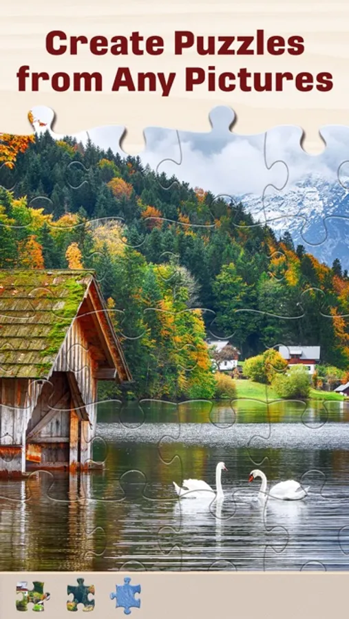 You can use any pictures on your device to create jigsaw puzzles. Make puzzles using your family photos, photos of your pets, or any pictures you find on the Internet.