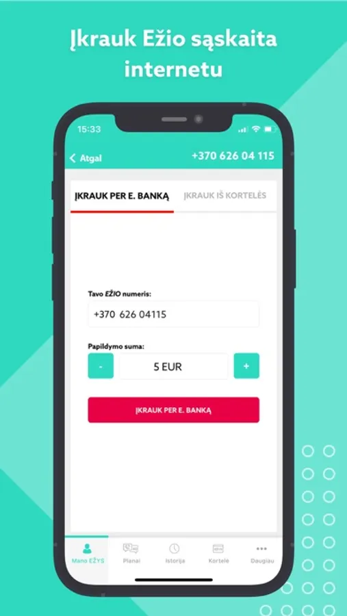 • papildyti sąskaitą;