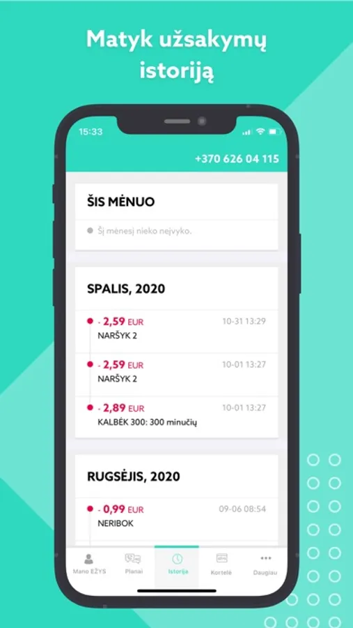 • matyti savo sąskaitos istoriją;