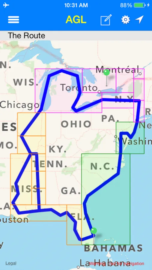 America's Great Loop is the circumnavigation of eastern North America by rivers, canals and waterways. The app shows on the map the main route, locks, marinas and anchorages suggested by loopers. Loopers can share their location with their families and friends. Warning : this app does not replace nautical charts or specialized publications. Not for navigation !
