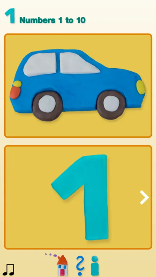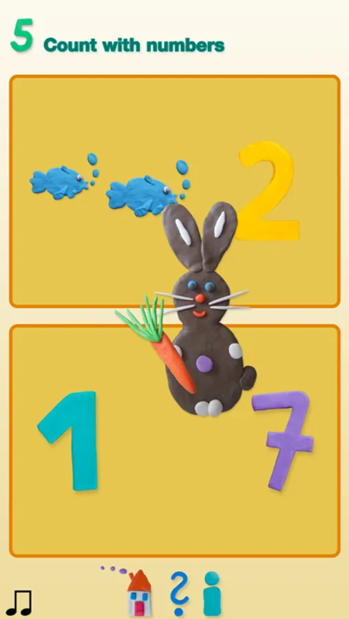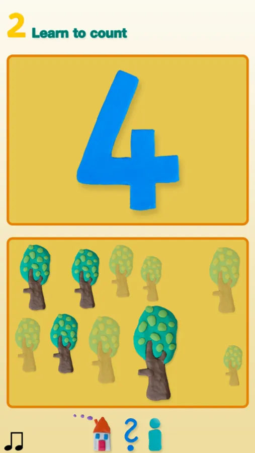 We create child-friendly educational software for iPads and other tablet computers that have a touch-screen operation. The app 'Learn to count' is part of a series of educational games for children and introduces the numbers from 1 to 10. To create a child-friendly learning environment, many graphical elements such as navigation, figures, numbers, and symbols were kneaded with modeling clay by hand. The app includes a total of 7 games (no in-app purchases required):