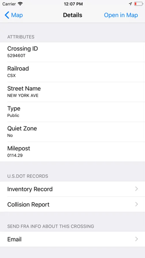 - View the official USDOT collision record with accident/collision history for specific crossings