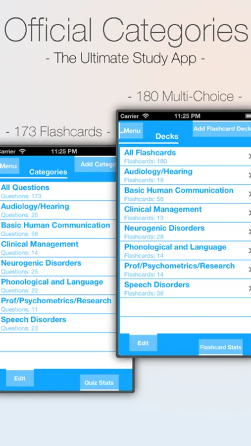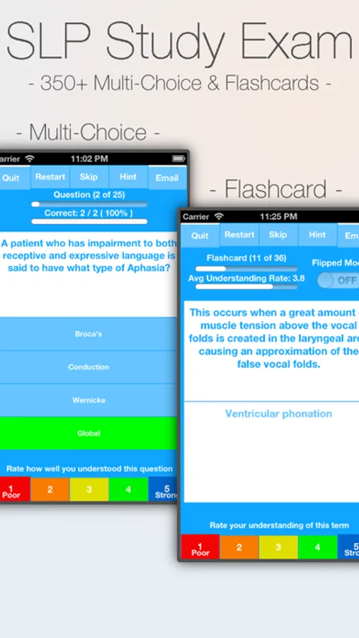 This revolutionary system allows you to create your own SLP questions and flashcards. Create an unlimited amount of your own questions and flash cards and even edit ours. This app allows you to be actively involved in your learning. Research has shown that actively involved individuals have a better understanding and retention of topics, which often results in better scores and grades.