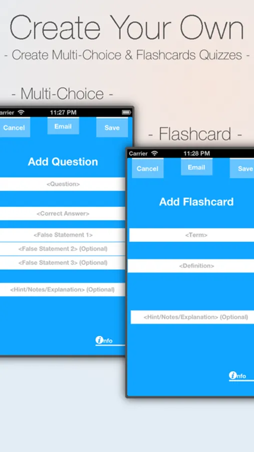 √ Create Your Own! Create unlimited multiple choice questions and flashcards for your own review.