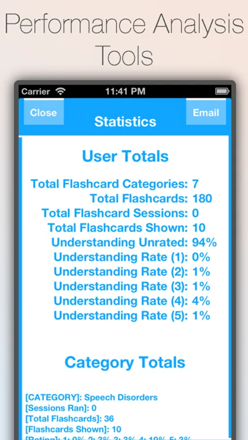 This app includes in-depth analysis tools which allow you to view statistics on every quiz taken as well as totals. We offer a historical feature which allows you to view any test/quiz taken so you can monitor your progress.