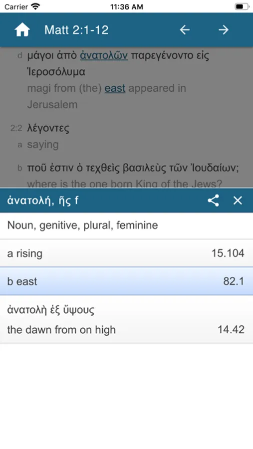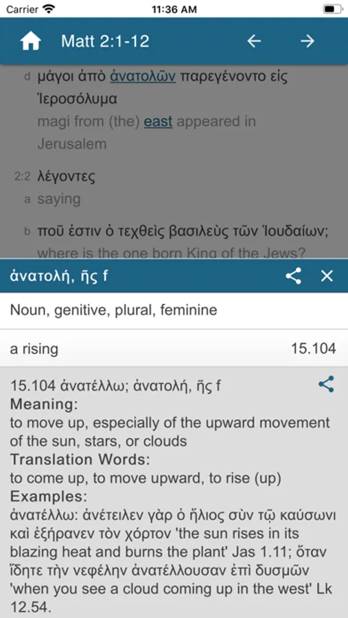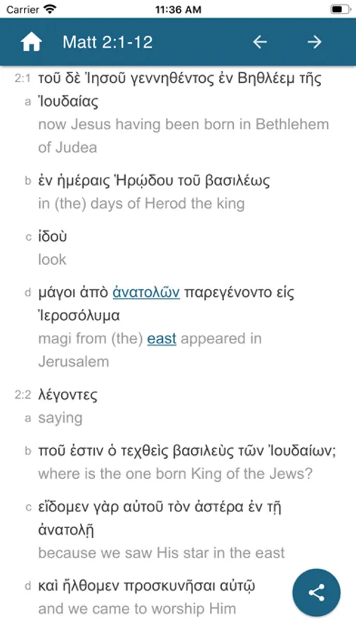 This unique Interlinear Greek-English New Testament is easy to use. It is a new interlinear English translation linked to the Greek text and NOT a published book in the form of an app. Just touch any Greek word and it gives the English, or vice versa. Touch again to see all the possible Greek meanings with the correct one(s) in context highlighted. Browse all the meanings. You do not even have to be able to read or pronounce Greek.