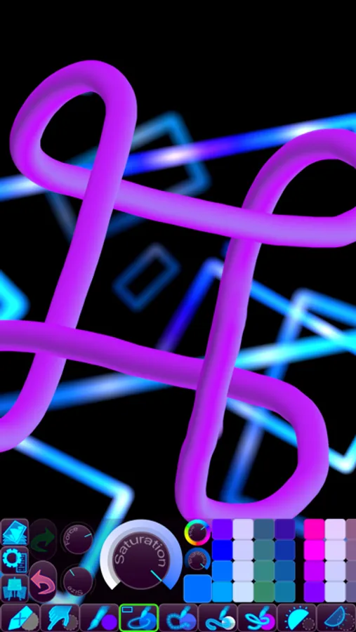 Use any buttons or controls to change/adjust color, size, force, simultaneously while painting.