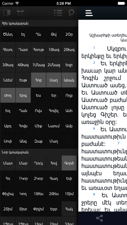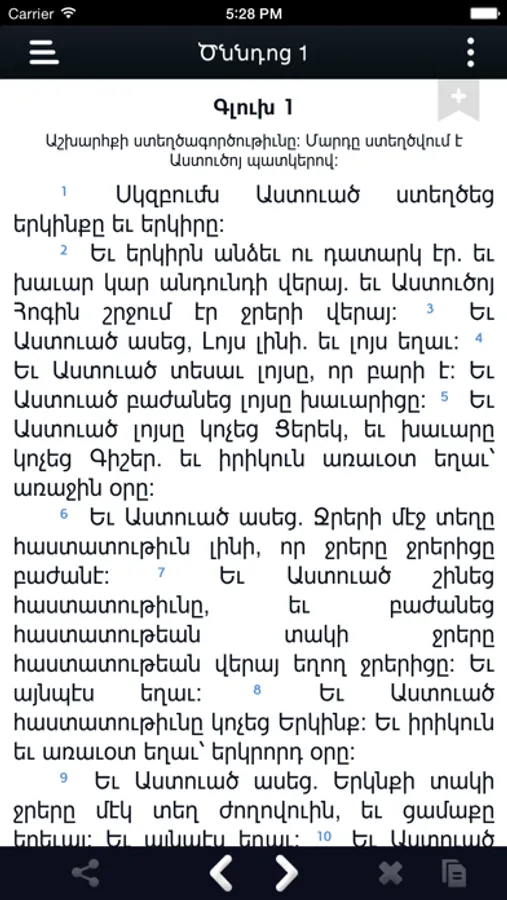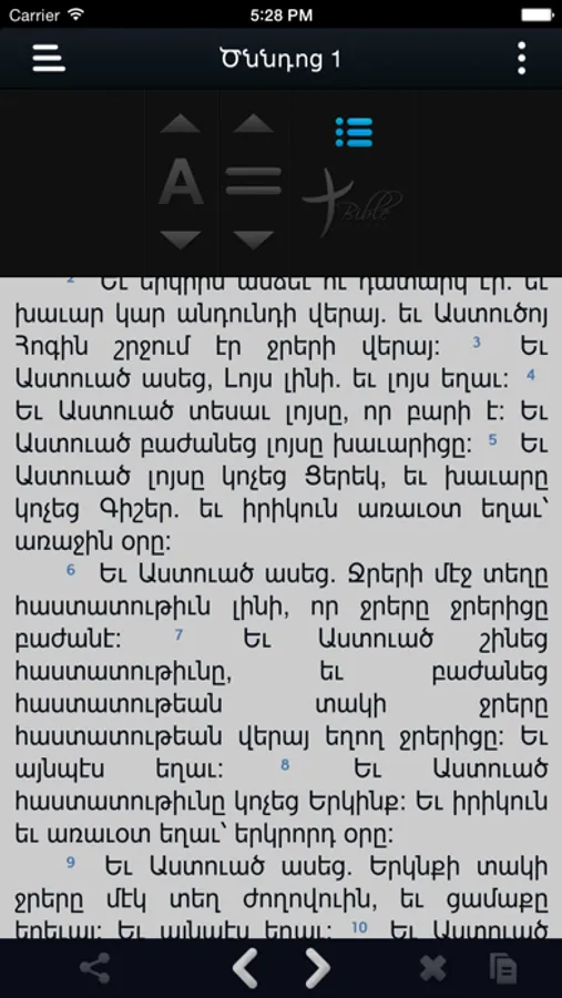 Bible Stones is one of the best free Bible reader software available on the market. It gives you the opportunity to read the word of God with ease and comfort, with a state of the art UI and an easy-to-use navigation. In this version "Armenian Ararat" and "Russian Synodal" Bible translations are available. In the future releases more translations will be added, as we are geared toward helping every user achieve comfortable Bible studying in their native language.