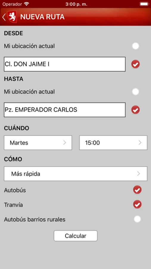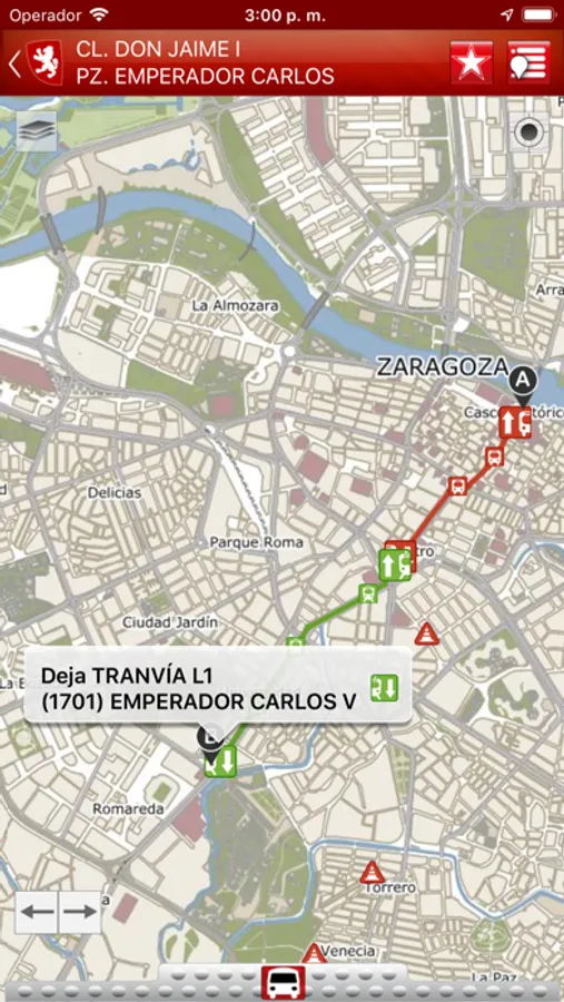 Zaragoza City Council official application to calculate the best route to move inside the city using public transport.
