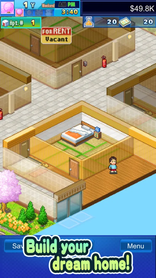 You play both architect and landlord in this fanciful new sim, and it's up to you to furnish your ideal abode with anything from arcade games to saunas to convenience stores. Certain combinations can power up your rooms...and their rent. Put an HDTV and game console together to make a game room, or a grand piano and painting together to make a fine arts room!