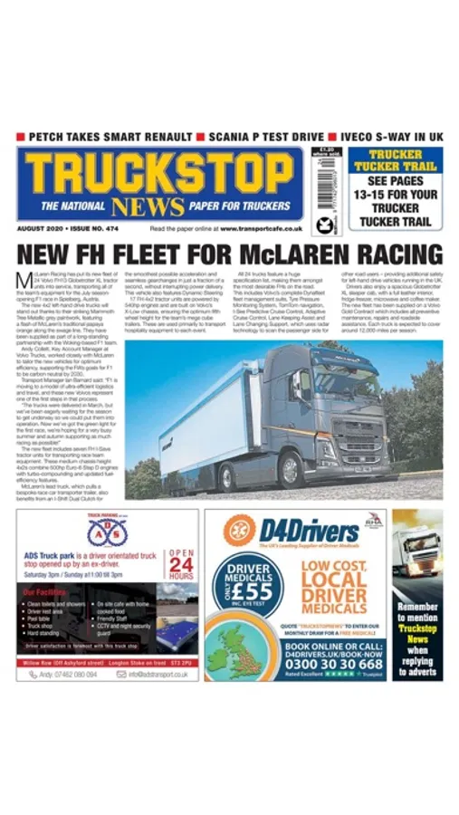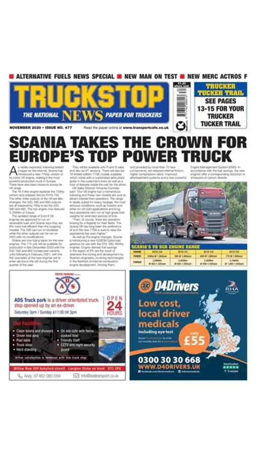 Truckstop News is the UK's leading newspaper for truck drivers. The paper deals with the real issues facing truck drivers and includes all the latest news from the road transport industry.