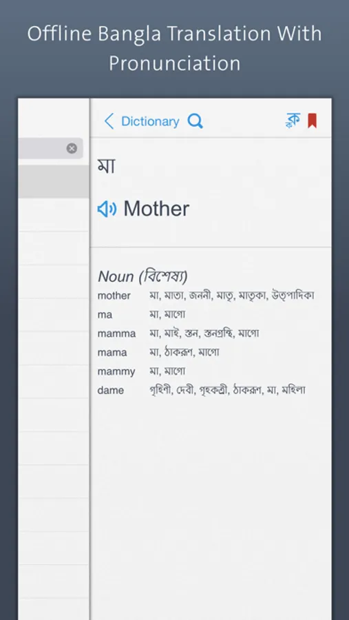 OFFLINE & FREE Bangla Dictionary. Very useful for students/noble writers/scholars. It has most commonly used English & Bangla words which we use in our daily life and books. It also has English word pronunciation feature for learn the word quickly.