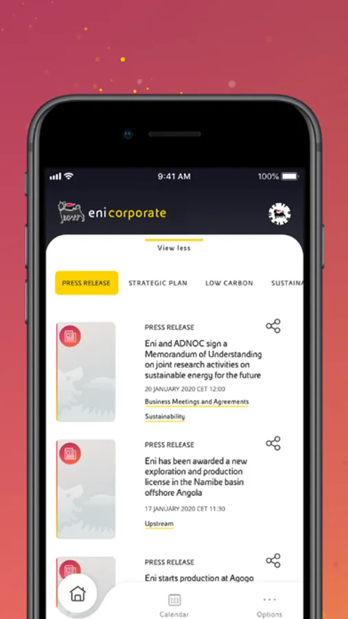 Eni Corporate is the app that keeps you updated on all our news: press releases,