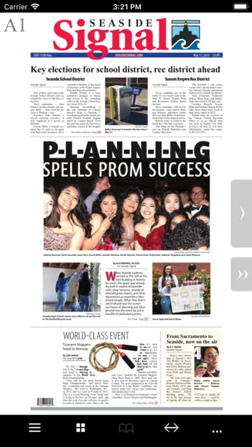 You can flip through pages and skim headlines as you would the printed edition. But better than that, the Seaside Signal e-Edition allows you to enlarge type with the tap of a finger, or jump instantly to the conclusion of a story on another page. You can link to websites mentioned in stories with a single touch, or fire off an e-mail to an address linked from the newspaper. If you missed the paper one day, don't worry. The Seaside Signale-Edition lets you download past e-Editions, too.