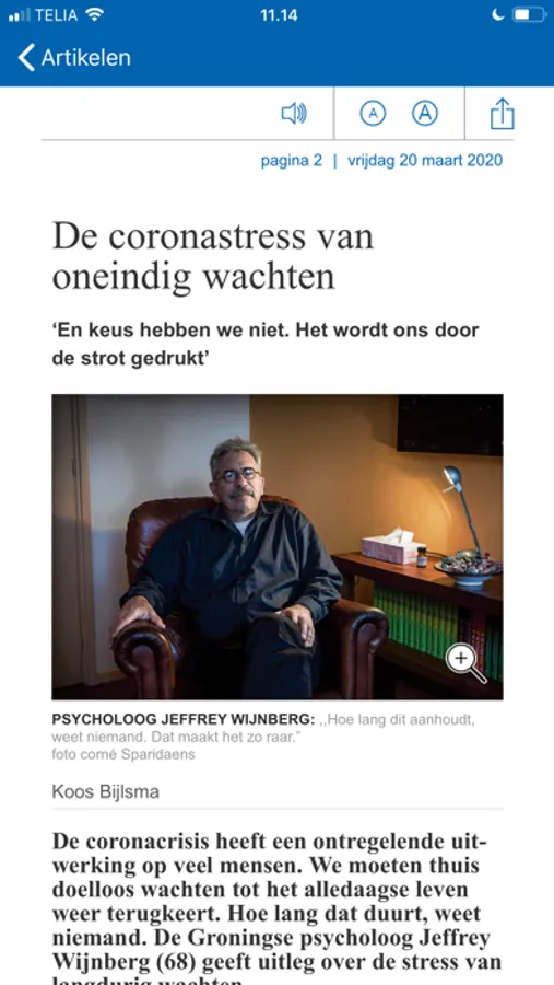 - U kiest zélf hoe u de krant wilt lezen: alsof het de papieren krant is, of per artikel in een makkelijke tekst- en beeldversie. U kunt inzoomen op pagina's, artikelen en beelden.