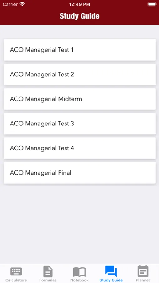 ACO Managerial is for student taking Principles of Managerial Accounting. It provides students with key formulas to reference and study and calculators to assist with your homework. ACO Managerial also contains a notes section for taking notes in class or writing a review to study later.