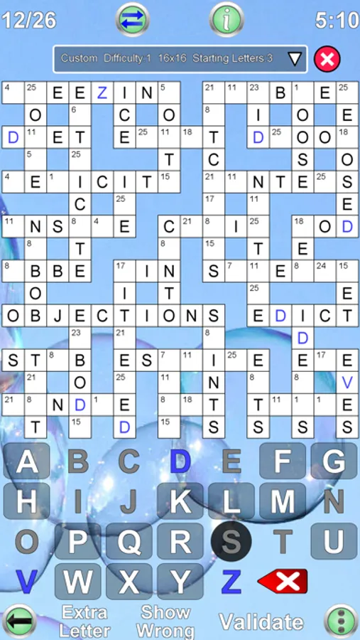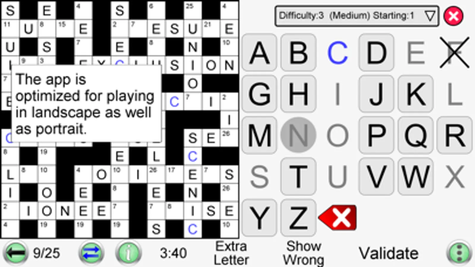 4) Selecting a square in the grid will highlight all places the same letter is used in that grid (i.e. has the same number to decipher). This is really handy and of course not possible when doing codewords in a magazine