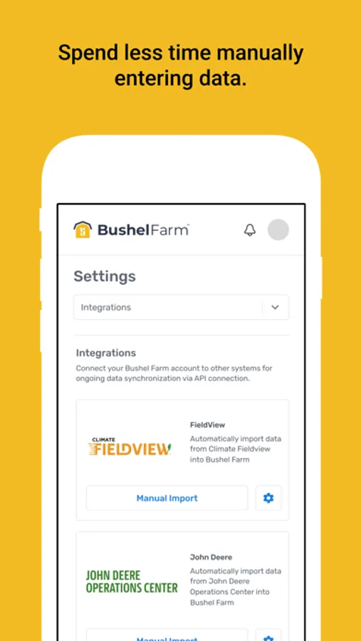 Integrations with John Deere® Operations Center and Climate FieldView® reduce the burden of manual entry for farmers, allowing seamless imports of field activities and input data. Farmers also have the ability to share field boundary shapefiles and field activity records from Bushel Farm, electronically rather than manually, for sustainability programs. Bushel’s data permission controls are built into the platform to ensure data privacy and sharing only when properly authorized by Bushel Farm users.