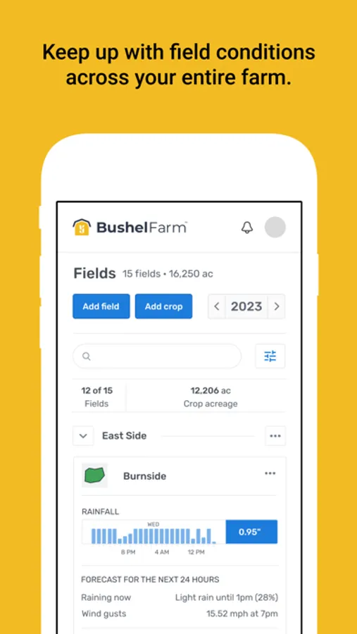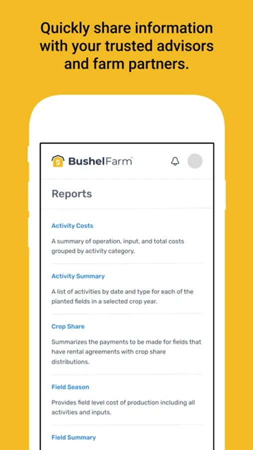 Bushel Farm (formerly FarmLogs) gives farmers both a ground-level and big-picture view of their farm’s operational and financial performance. Unlike multiple spreadsheets or messy notebooks, Bushel Farm organizes and centralizes an array of farm records - field maps, rainfall and satellite imagery, scouting notes, equipment, activities and inputs, grain sales and inventories, land agreements, work orders, and more.