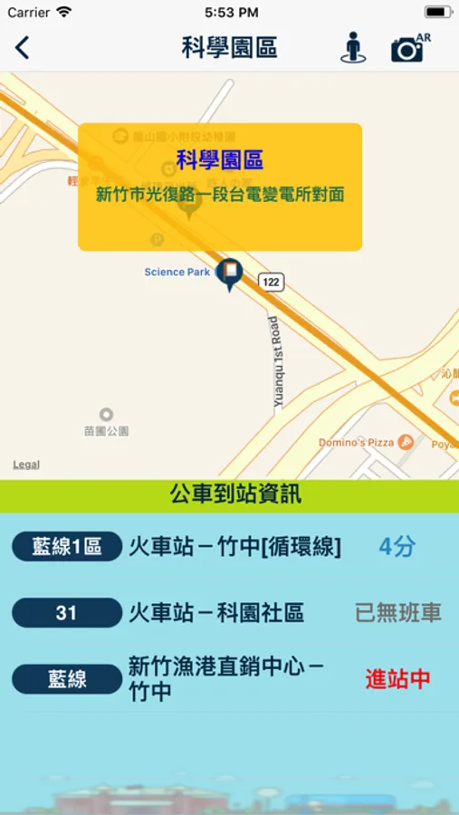 「iBus_新竹市APP」改版囉~,新版App提供大新竹地區公車動態資訊,讓居住在新竹地區以及來訪新竹的旅客,更有效率地了解公車即時動態,並規劃旅程。功能說明如下:1.「公車到站時間查詢」:查詢公車何時到站,於適當時間前往等車,不需在站牌處久候。2.「附近站點」:查詢目前所在位置附近公車站牌位置及行經路線,另可輸入地標關鍵字,查詢該地標附近公車站牌及行經路線資訊。使用者也可開啟AR導覽,搜尋站牌位置。3. 「 最愛站牌」:可查詢標記「最愛站牌」清單中各站牌的公車預估到站時間,當公車快抵達時,自動傳送車輛即將抵達的訊息提醒,避免錯過班車。4. 「交通資訊」:提供國道客運、公路客運、台鐵、高鐵、園區接駁車及YouBike等交通資訊,方便不同交通工具之轉乘。5 .「轉乘規劃」:提供往返新竹市各主要地標景點旅途規劃建議,提高觀光旅客轉乘公車之便利性。6. 「最新消息」:公告新竹市市區公車各項新聞資訊,重要訊息不漏接。